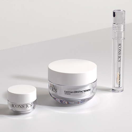 Doubling up on our sustainability efforts in collaboration with Eastman, ICONS|ICS now offers color cosmetics and skincare packaging using Eastman Cristal Renew copolyester!