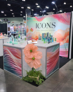 Our booth highlighted ICONS|America’s eco-friendly In-Mold Label (IML) Tubes and our latest sustainable packaging solutions and new soft-touch label finish. We demonstrated how our innovative packaging can help brands create immersive experiences that bring calm, joy, and mindfulness to the beauty industry.