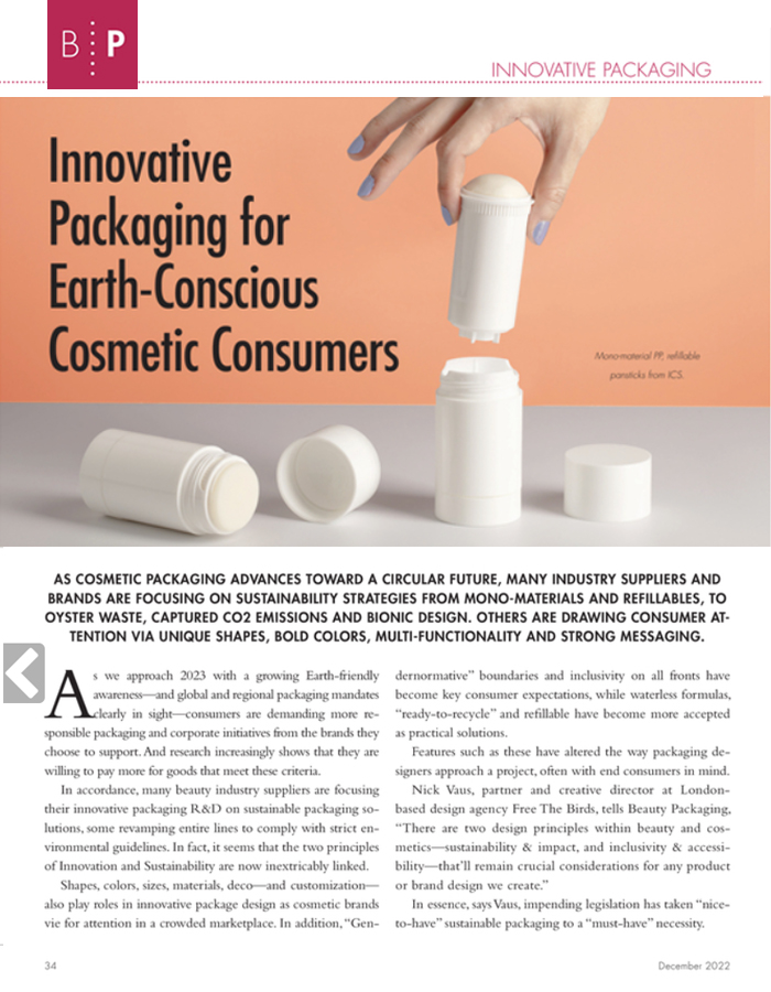 ICONS Mono-material packaging featured in Beauty Packaging ‘Innovative Packaging for Earth-Conscious Cosmetic Consumers’ Dec 2022 Issue
