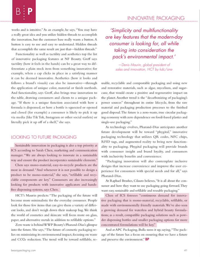 Beauty Packaging is the premier global media source dedicated to the cosmetic, fragrance and personal care packaging industry, providing in depth coverage throughout the year on leading beauty companies, beauty news, beauty trends and exhibitions. See our feature below and find the link here!